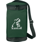 The Golf Bag 6-Can Event Cooler features a fully insulated main compartment with a liner, back and front zippered pockets and a removable and adjustable shoulder strap.
