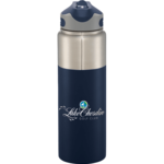 Bottle is double wall 18/8 grade stainless steel with vacuum insulation. Inner wall is plated with copper for ultimate conductivity to keep drinks hot for 8 hours and cold for 24 hours. On-trend, durable powder coating. Flip-top lid with straw for easy drinkability, suggest not to use with hot beverage. Carabiner handle. Wide mouth opening for easy cleaning and filling. Leed’s Exclusive. 25oz.