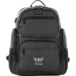 The Kenneth Cole® Double Pocket 15" Computer Backpack is a modern executive backpack with a unique heather texture. A padded, dedicated compartment protects a 15 inch laptop. Three front zippered pockets offer organizational panels and easy access to your phone and other essentials. It also features additional side zipper pockets and water bottle mesh pockets, padded shoulder straps, a back panel and a trolley sleeve and grab handle. Signature Kenneth Cole branded lining and zipper pullers.