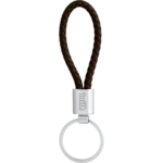 The Vegan Leather Twist Key Ring features a durable PU twist strap and a chrome plated conjoint with a metal split key ring.