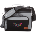 The interior of this cooler has a 12 can capacity and features SuperFoam® insulation to keep contents cold and an Ultra Safe® leak proof, easy clean lining. The exterior includes 3 pockets, a carrying handle and an adjustable Backsaver® shoulder strap that centers load weight to reduce body stress.