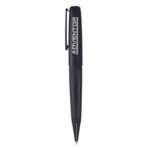 Exclusive The Brass Co® design. Gloss black upper barrel with textured bottom barrel and gloss accents. Twist action mechanism. Subtle The Brass Co® branding on pen clip. Includes premium black German ballpoint ink cartridge. Includes 2-piece The Brass Co® gift box.
