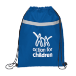 The Reflecta Pocket Drawstring Bag has an open main compartment with cinching rope closure. It also features a zippered front pocket with a stylish, reflective stripe.