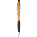 The Loomie Light Stylus Pen has twist action mechanism. Bright LED light shines through imprint area. Rubbers stylus on top. Black ink cartridge.
