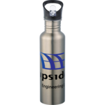 Screw-on lid with straw. Carabiner handle. Matte finish stainless steel construction. Wide mouth opening for easy cleaning and filling. BPA free 20oz.