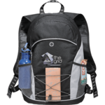 The Twister Backpack comes with a zippered main compartment and a zippered front pocket with earbud port access. Also features side mesh pockets, elastic bungee cording and a contrast handle with adjustable straps.