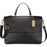 Sleek black vinyl exterior with high quality Kenneth Cole hardware and accents. Adjustable shoulder strap. Snap front closure with open front pocket. Kenneth Cole printed lining throughout with deluxe interior organizational panel. Dedicated computer pocket and tablet sleeve. The back of the bag features a hook & loop closure trolley strap and zippered quick access pocket.