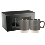 Includes 2 Arthur ceramic mugs 1626-36. The Arthur Ceramic Mug 14oz has a smooth matte body and a nature baked bottom which can help stack the mugs. It is microwave safe. Choose between color imprinting or our new cutting edge dishwasher safe laser decoration method "available on all colors except white". Leed's Exclusive 14oz. Gift Box is not decorated.