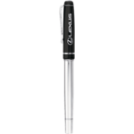 Deep, high gloss enamel on upper barrel is paired with a smooth chrome lower barrel. Cap off design. Pen includes premium black roller ball ink cartridge.