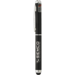 Functions galore! The 4-in-1 has you covered with functions that include: ballpoint pen with black ink and rubber stylus tip, with flashlight and laser integrated into upper barrel. Twist action mechanism. Soft rubber stylus tip is integrated into a removable barrel. Stylus ideal for everyday use including public touchscreen pads such as retail payment pads and ATMs. Laser pointer has 100' range. Includes batteries.