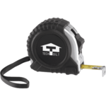 The Journeyman Locking Tape Measure features a 10-foot retractable tape measure with standard and metric measurement, woven nylon wrist strap and a metal belt clip A slide-locking button locks the tape in place.